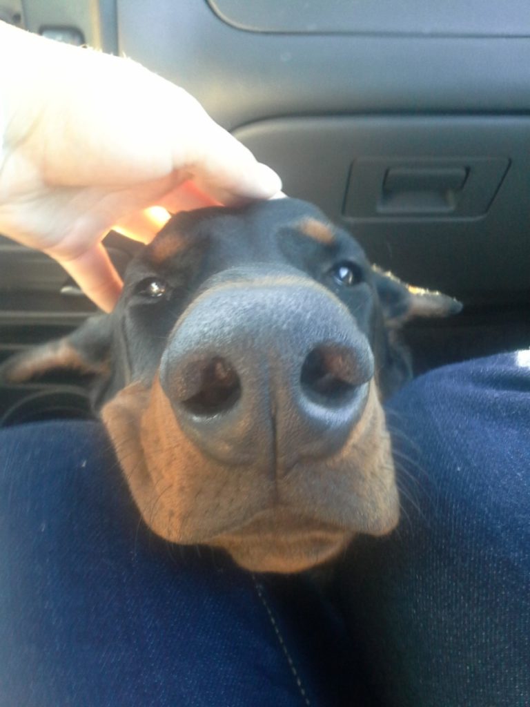 If you’re going for a particularly long drive, it may be helpful to put your Doberman pup in either the front with you or the middle seat if your dog must sit in the back. I know you’re probably thinking that your Dobie won’t fit in the front.